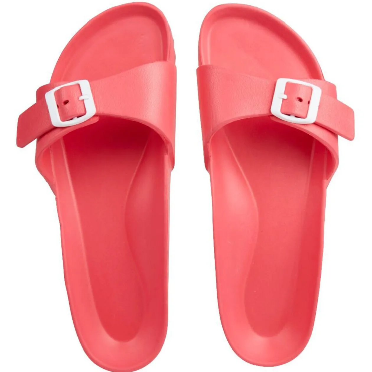 Mule à boucle resserable en plastique uni rose.