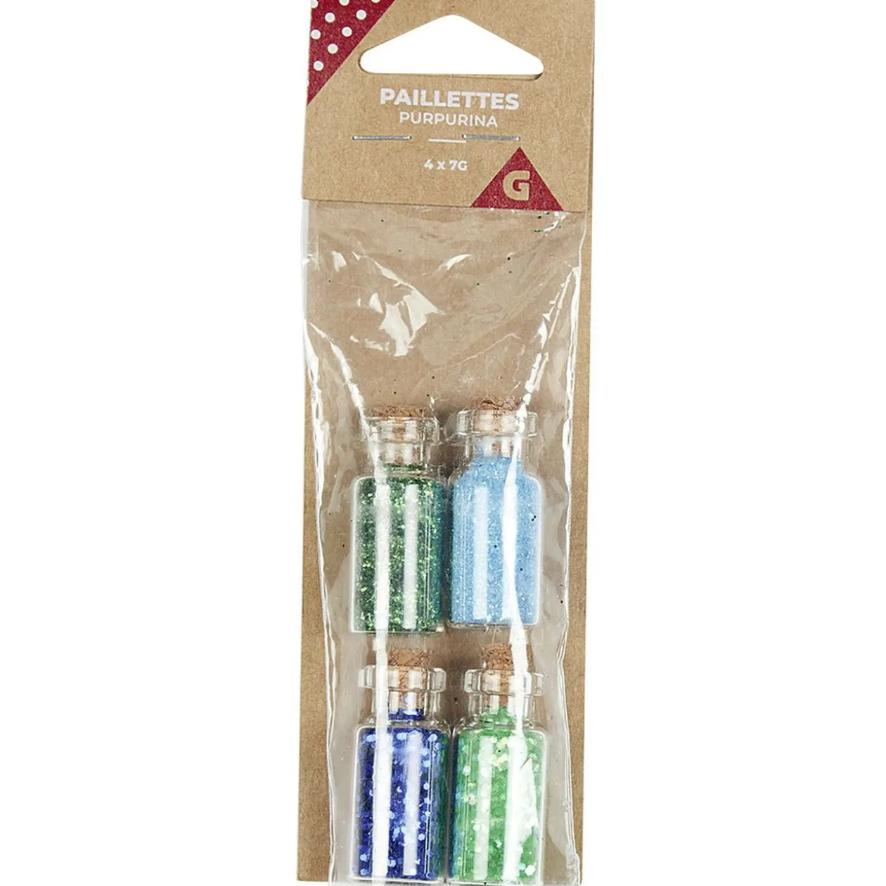Lots de 4 flacons de paillettescoloris bleu et vert.