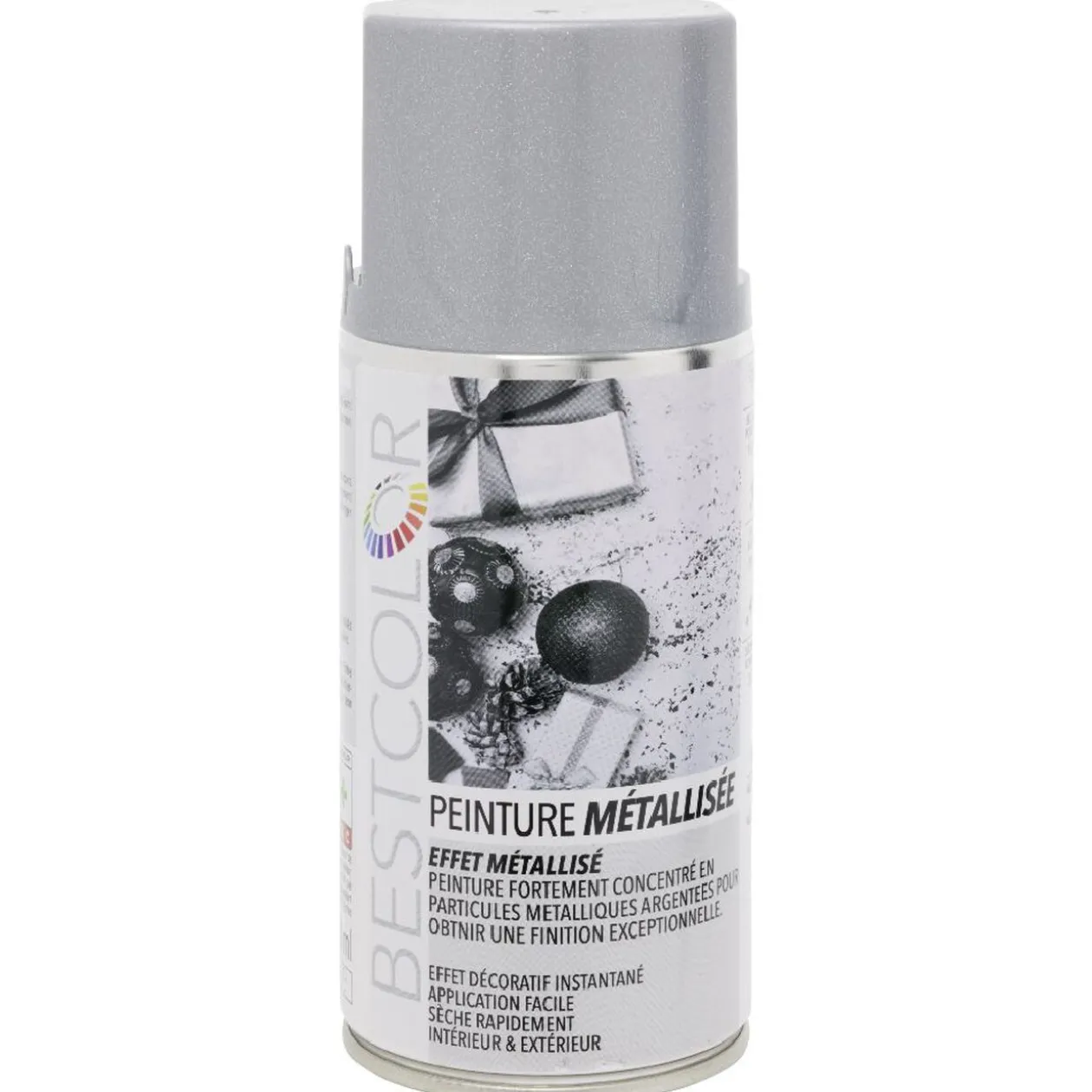 Peinture en spray argenté métallisé avec micro-paillettes pour faire scintiller votre décoration. D’une bonne opacité, cette peinture résistante aux chocs peut s’appliquer sur différents supports en intérieur et extérieur.