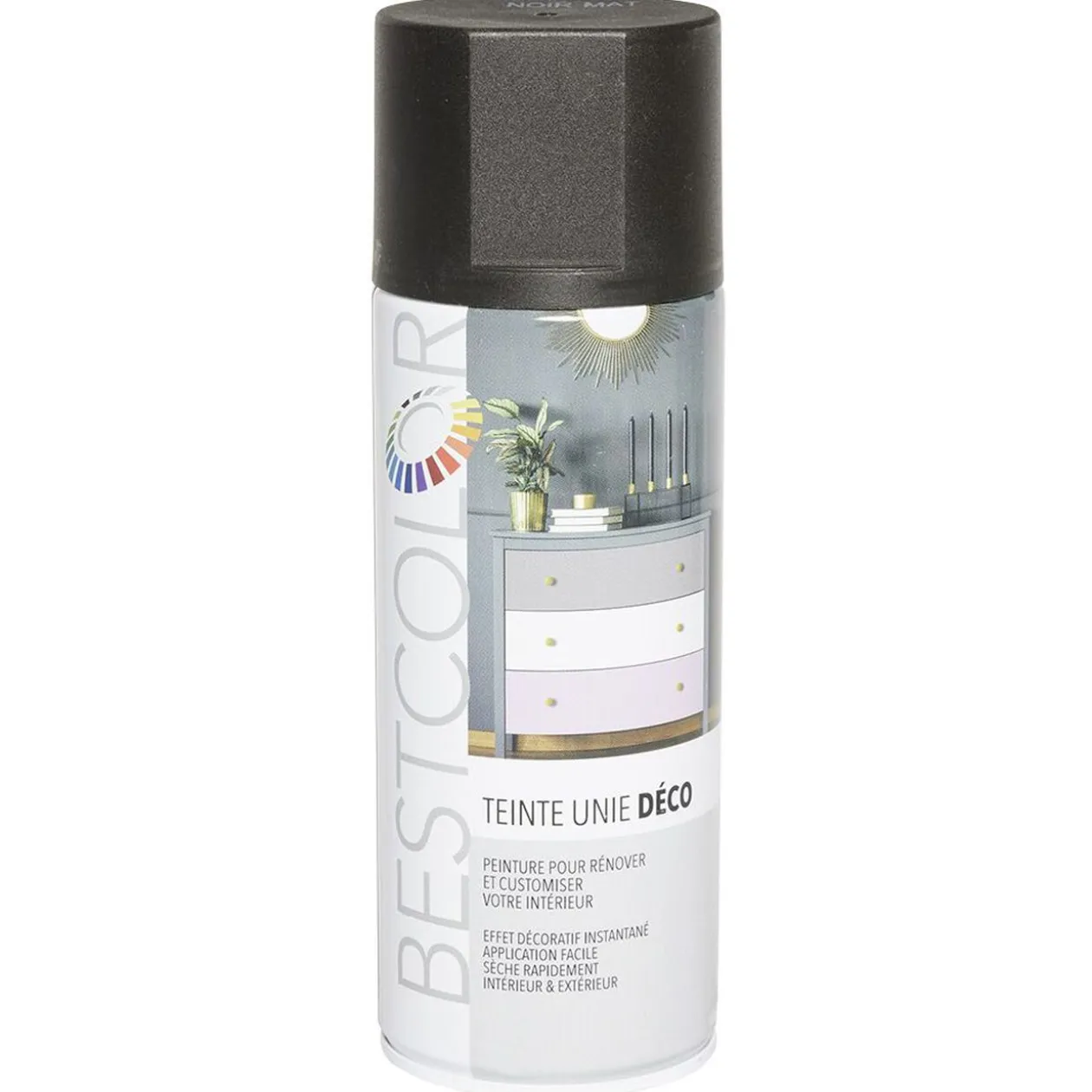 Transformez et personnalisez vos objets intérieurs comme extérieurs avec cette peinture aérosol de coloris noir mat.