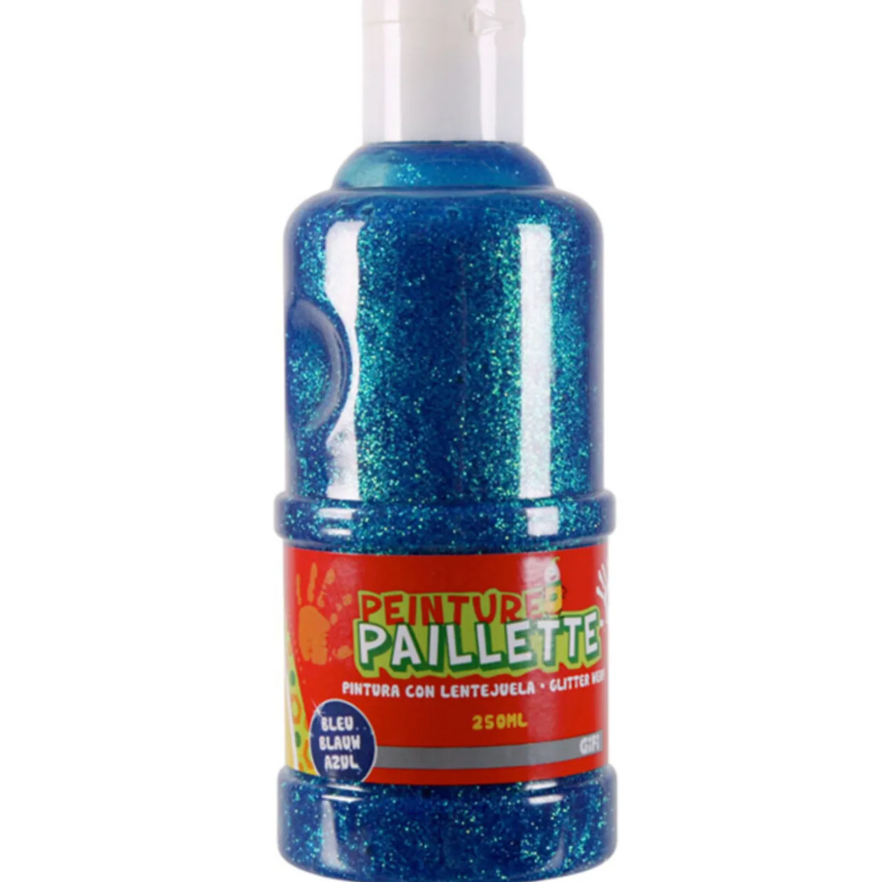 Peinture paillette bleue, cont. 250 ml. Dès 3 ans.
