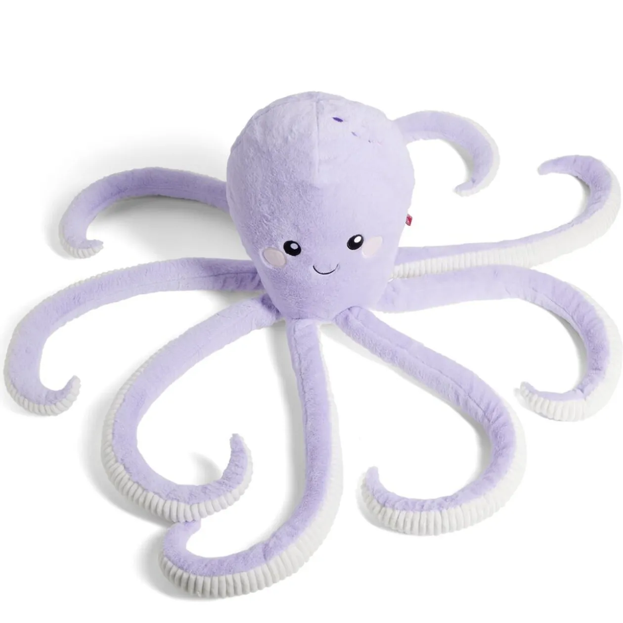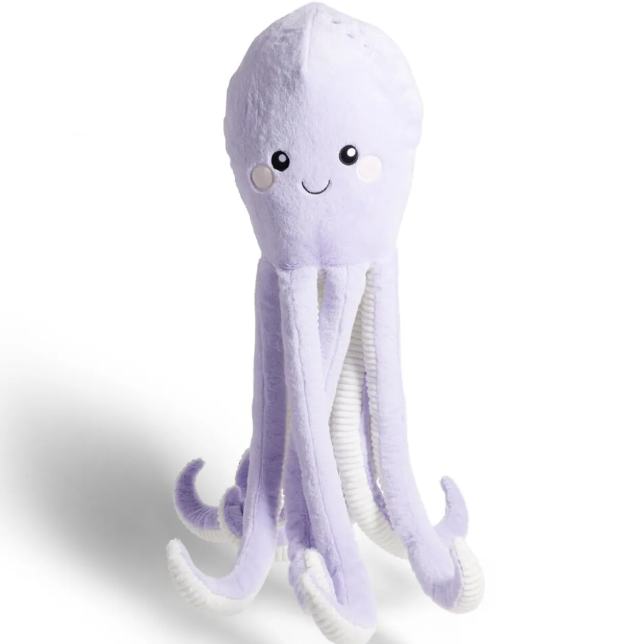 Douce et câline, cette peluche en polyester représente une adorable pieuvre aux couleurs vives.