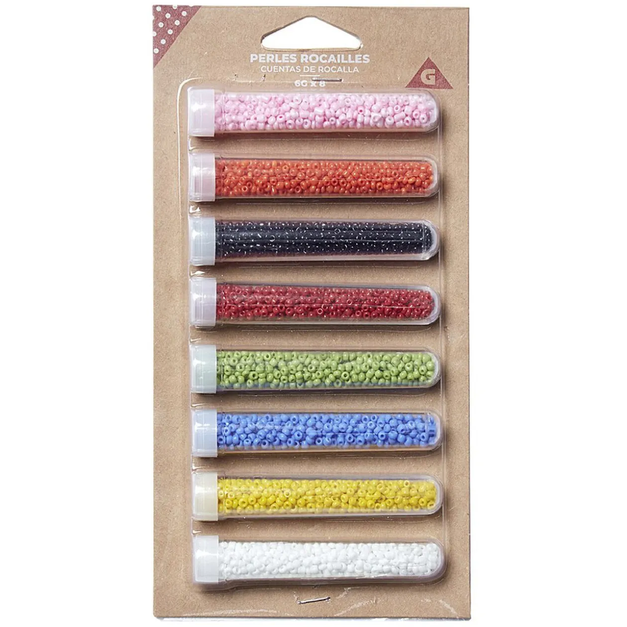 Créez vos bracelets ou atres bijoux avec ce lot de 8 tubes de perles colorées.