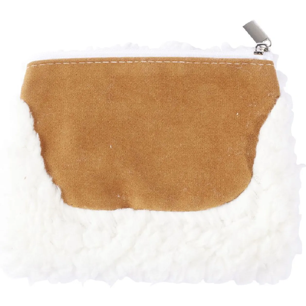 Pochette imitation laine blanche et daim marron, idéale pour accessoiriser une tenue dans un style authentique.