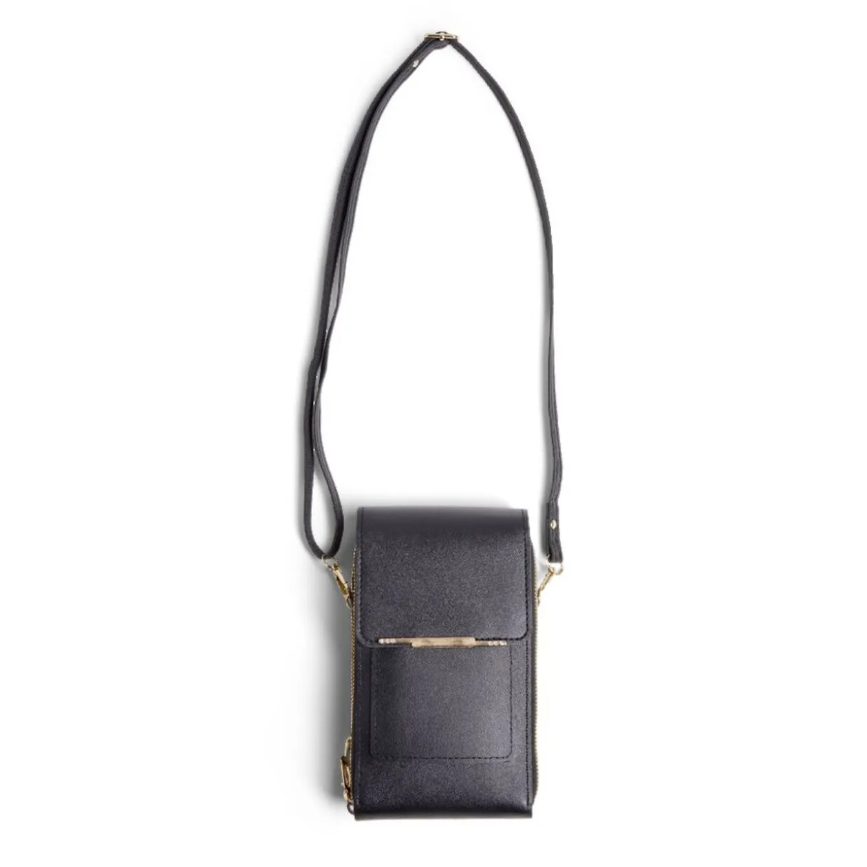 Cette pochette en polyuréthane, dotée d’une fermeture éclair métallique, offre une protection au quotidien pour votre téléphone.