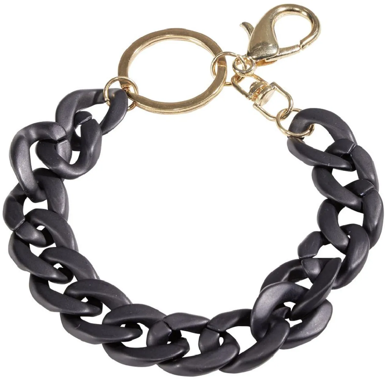 Porte clé à maillon uni noir ou multicolore avec attache dorée, parfait pour accessoiriser un sac, une trousse, des clefs et tout autre objet.