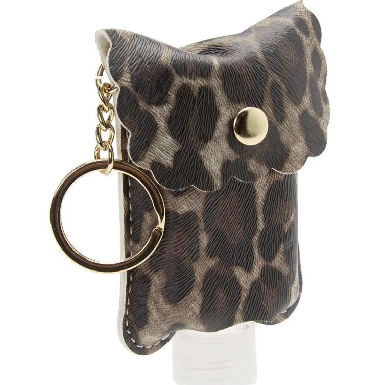 Porte-clé avec flacon pour distributeur de gel hydroalcoolique design léopard.