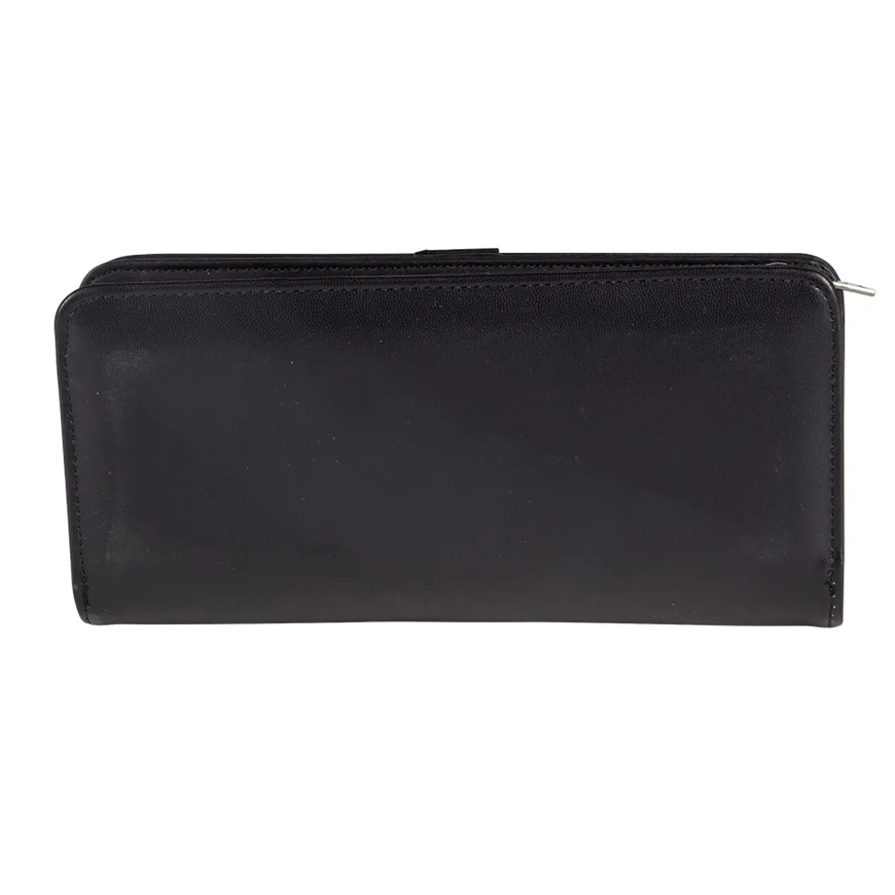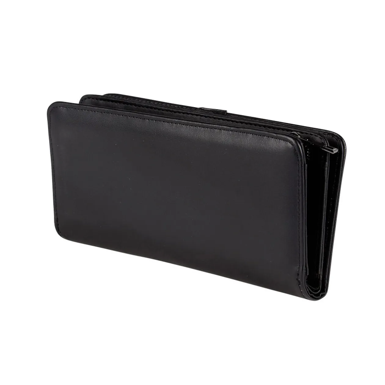 Pratique avec ses 2 compartiments à Fermeture à glissièrepée et ses multiples fentes pour cartes, ce porte-feuille en pu effet simili noir vous accompagnera partout!