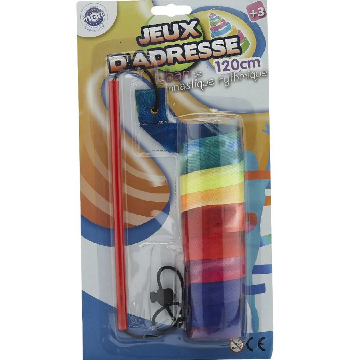 Un ruban de gymnastique rythmique – Couleur : Muliticolor – Dimensions : 120 cm – Matière : Polyester