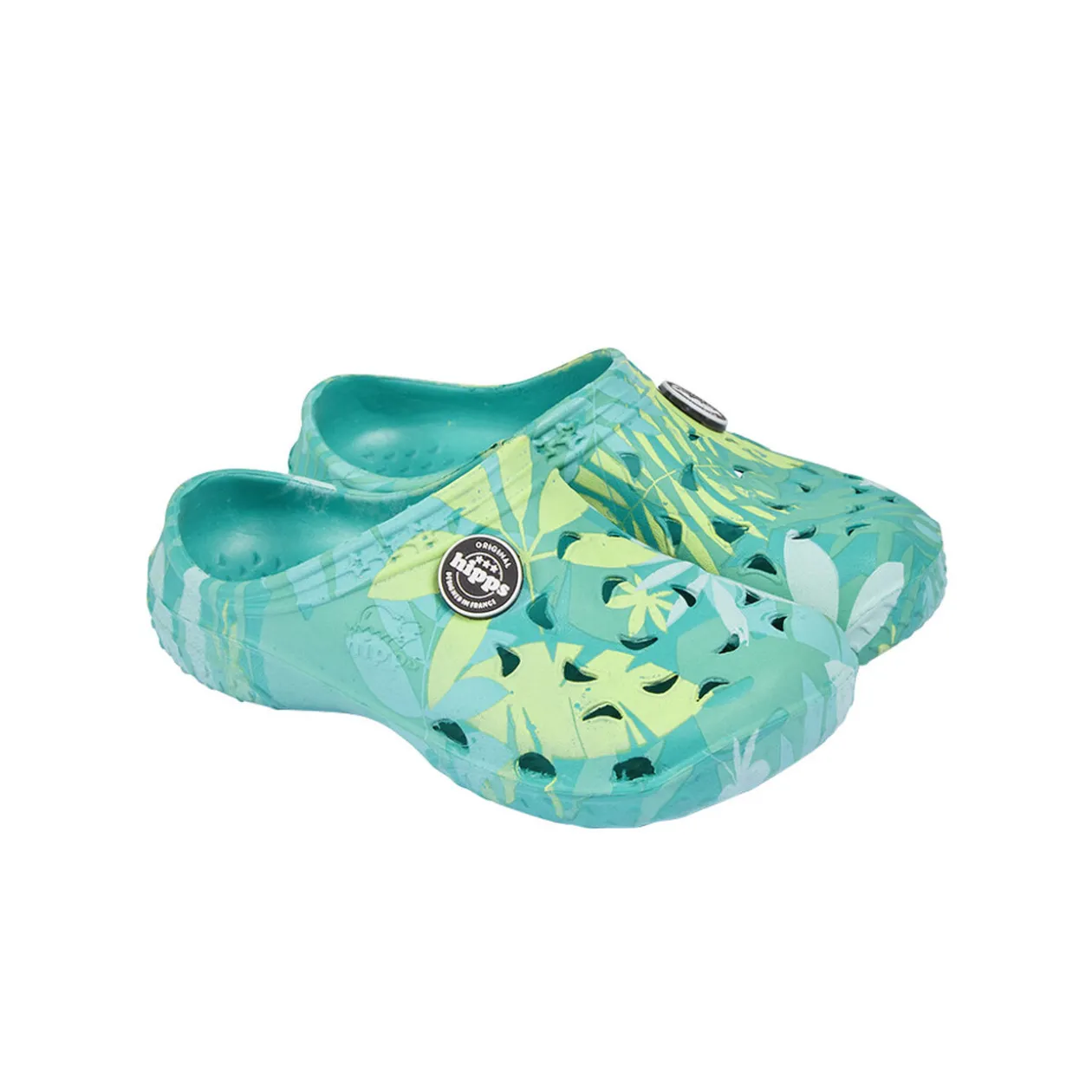 Paire de sabots Hipps pour enfant à motif feuillage vert.
