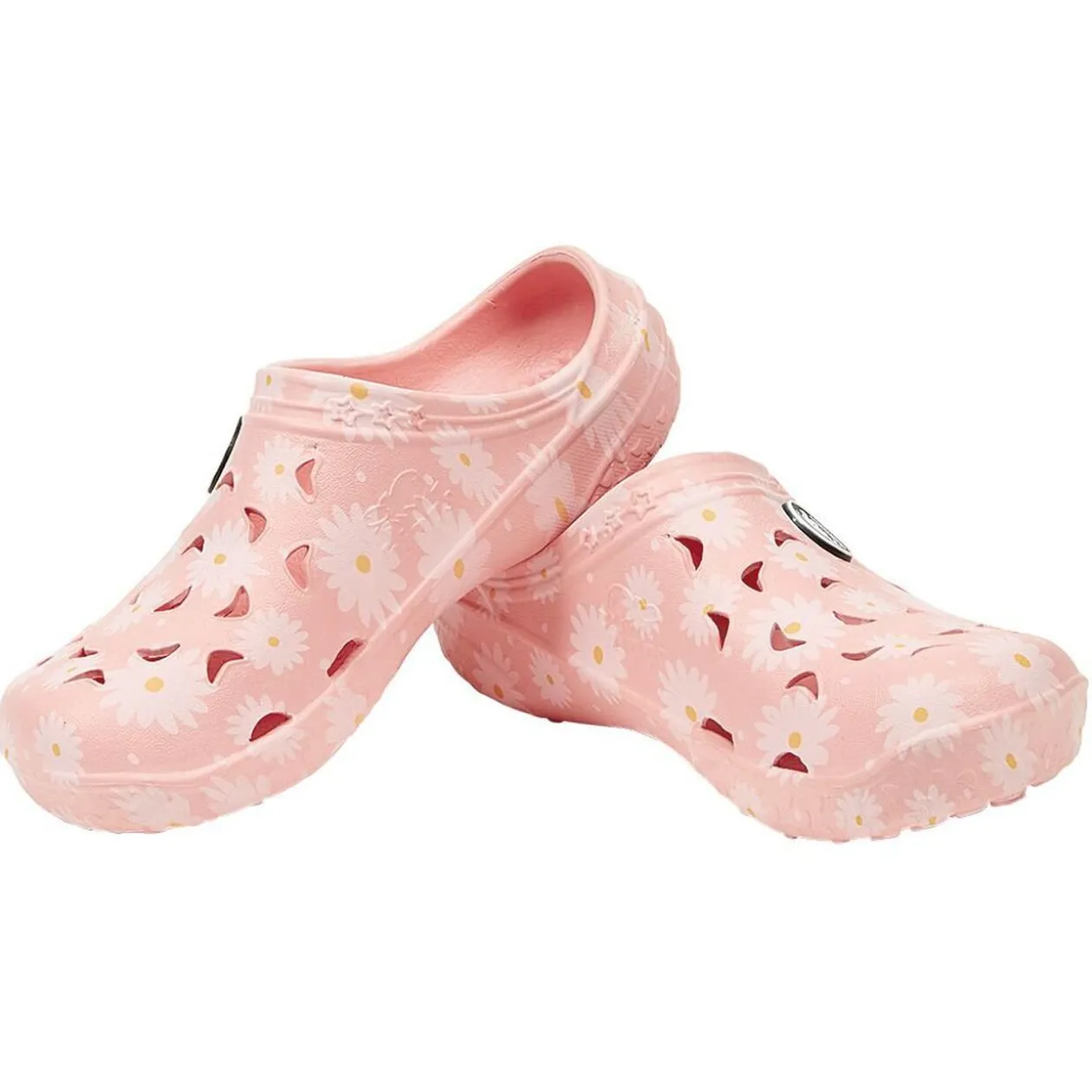 Paire de sabots Hipps roses pour enfant à motif fleurs blanches.