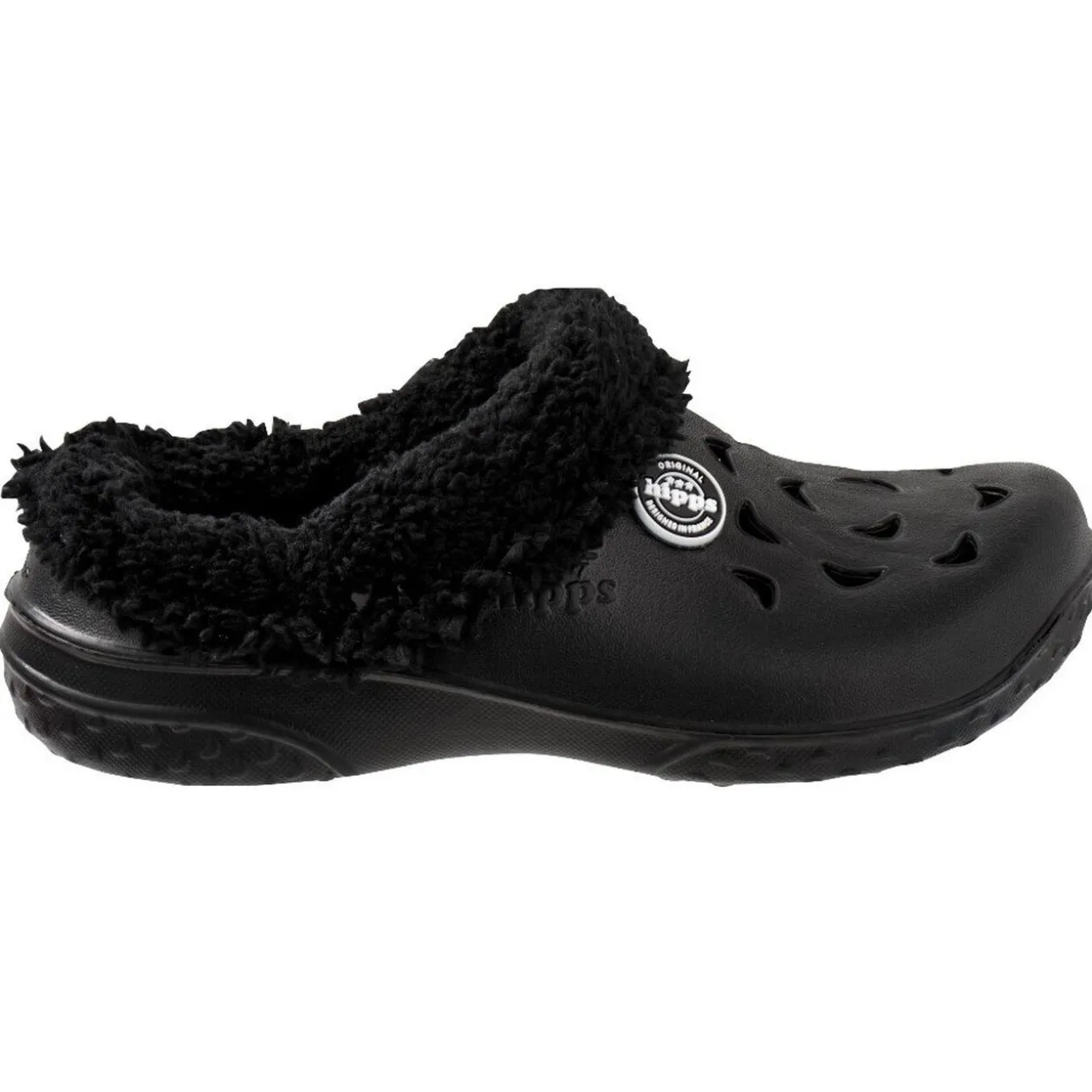 Paire de sabots Hipps pour enfant en plastique fourré de couleur uni noir.