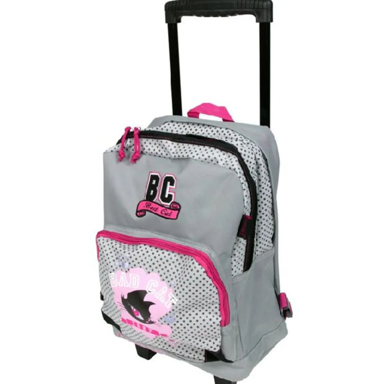 Sac à dos trolley « Bad cat », à roulettes, 100 % polyester. Dim. 46x20x28 cm. Poignée en plastique, ouverte H77 cm.