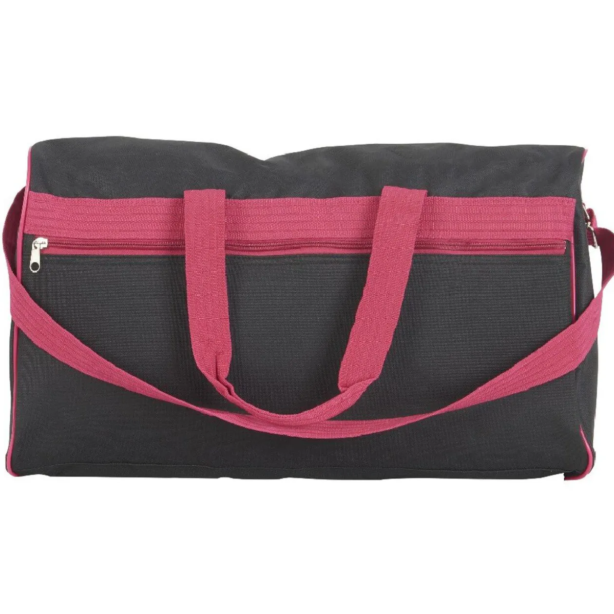 Sac de voyage week end noir et framboise, dim. 50x25x30 cm, polyester.
