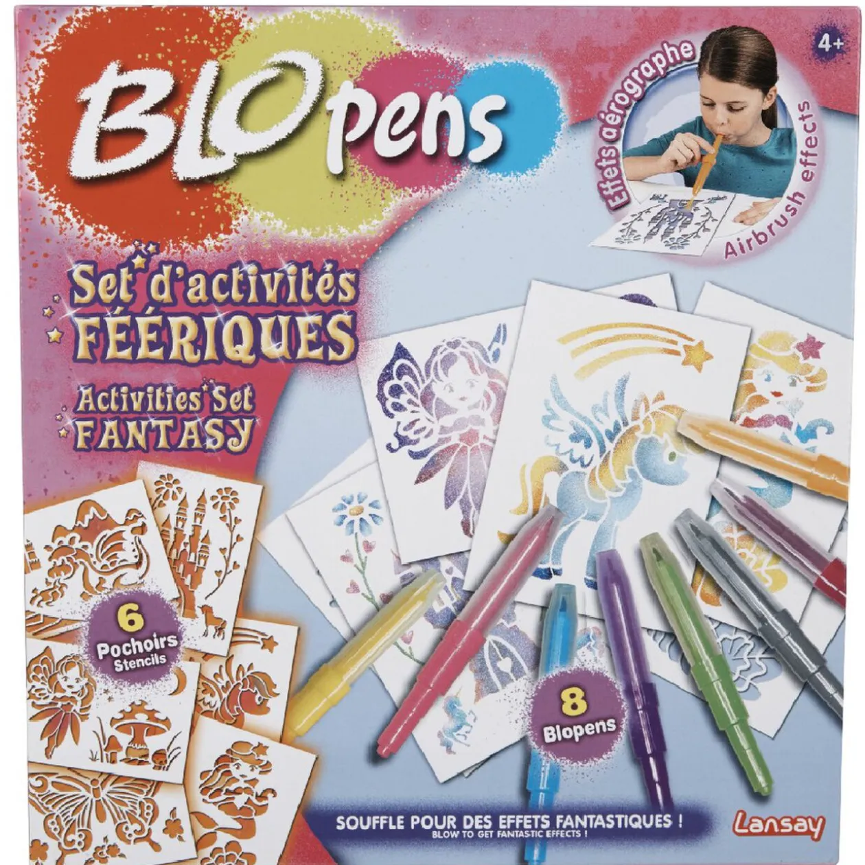 Comprend : 6 pochoirs et 8 blopens.