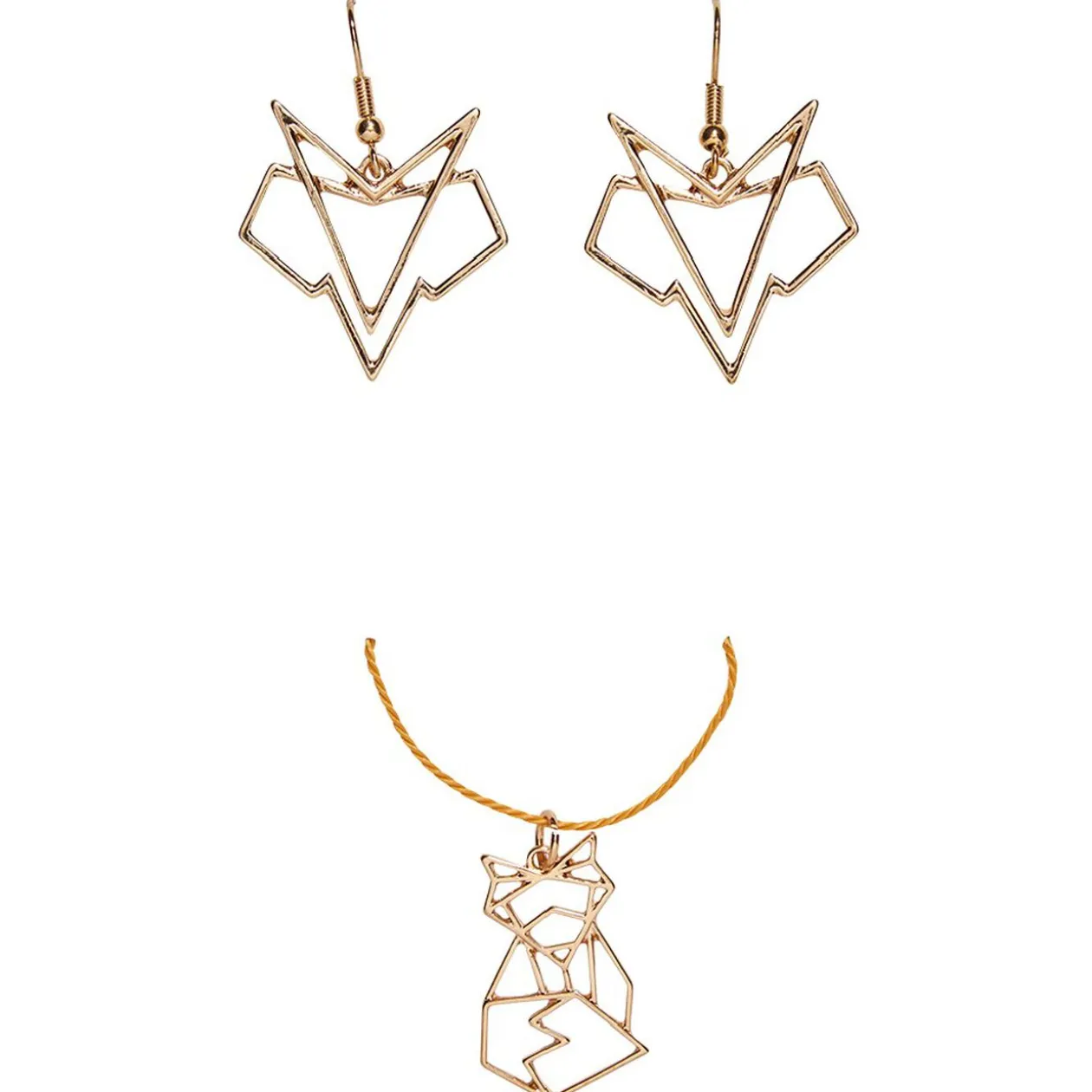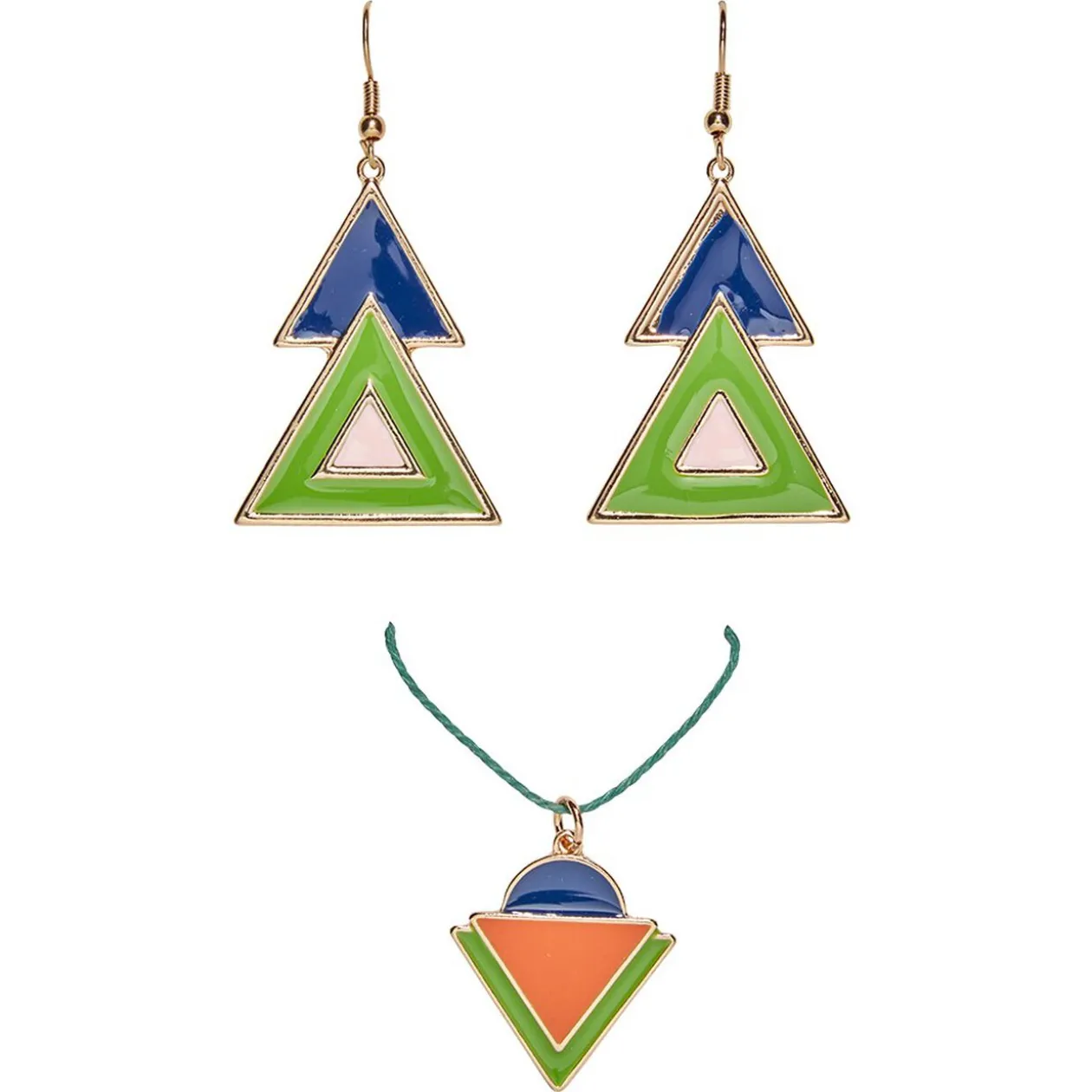 Set de bijoux gamme block au design géométrique, comprenant un collier et une paire de boucles d’oreilles.