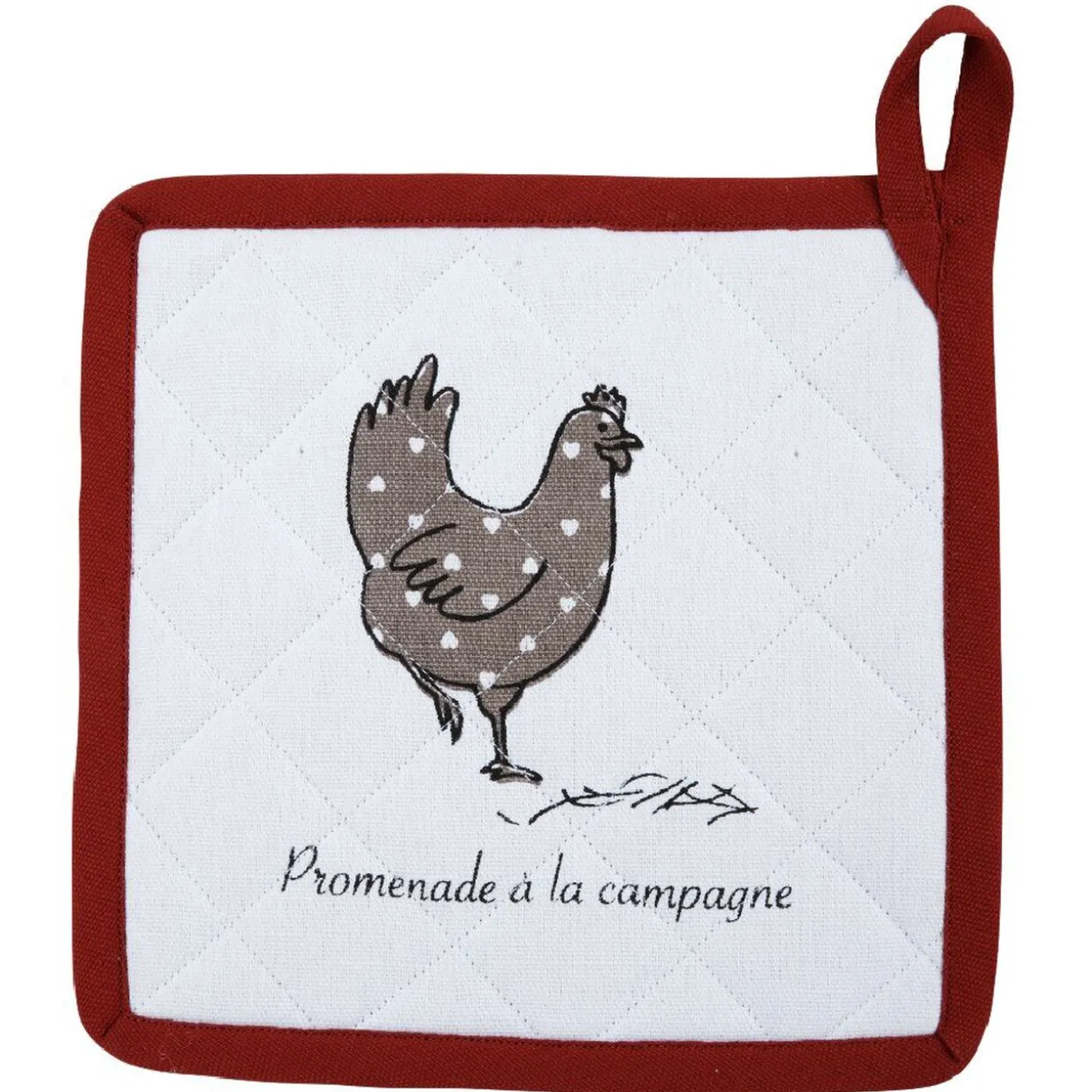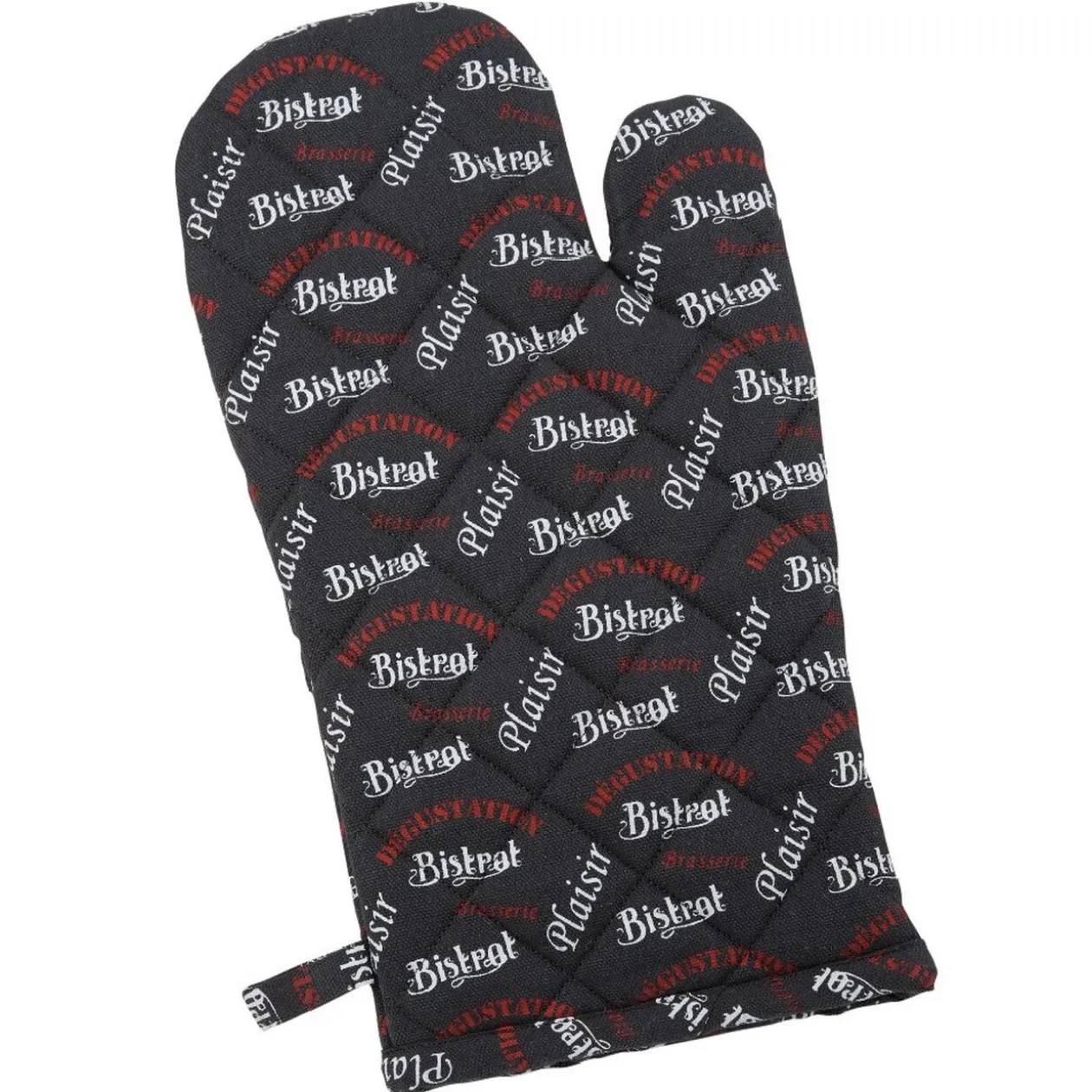 Set de cuisine 4 pièces – Dimensions : torchon46x70 cm, tablier 90×70 cm, gant 18×32 cm, manique19x19 cm – Matière : coton. Existe en 3 modèles.