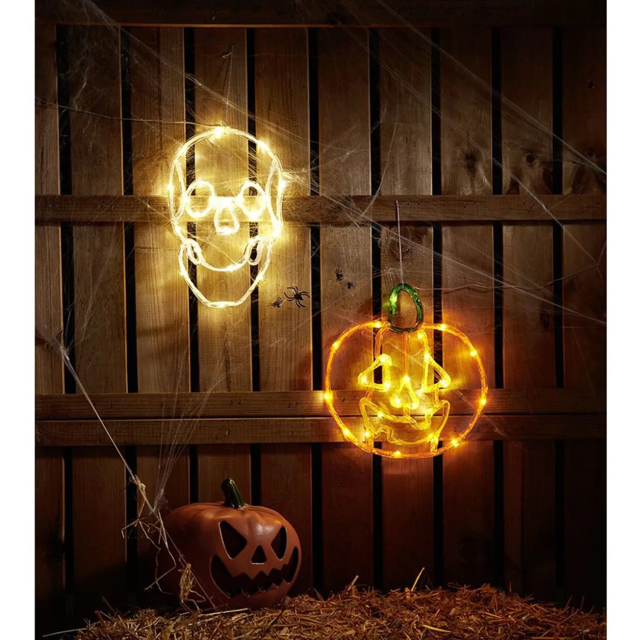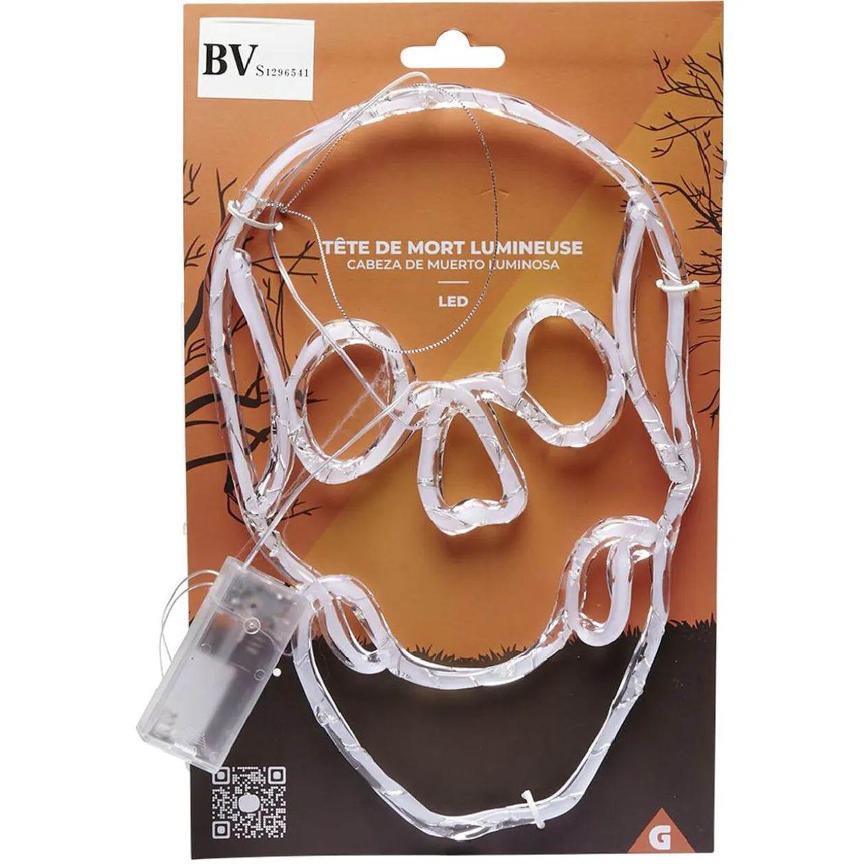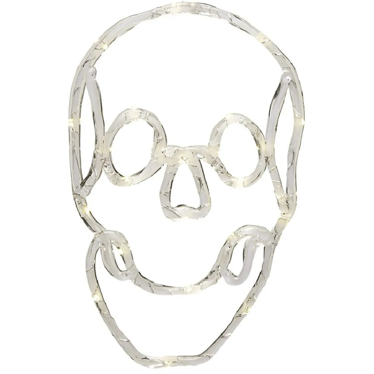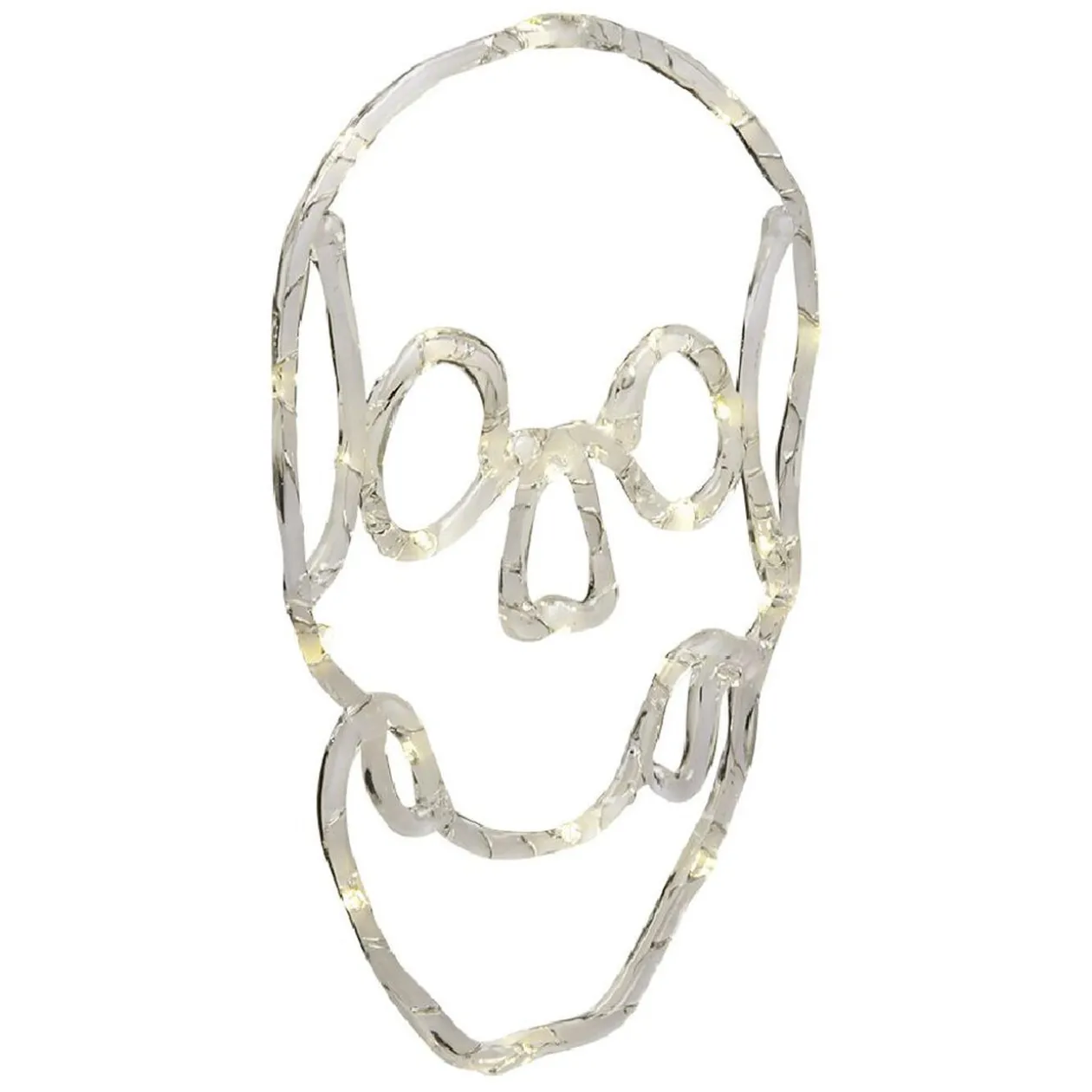 Une tête de mort LED en plastique qui brille dans le noir à suspendre.