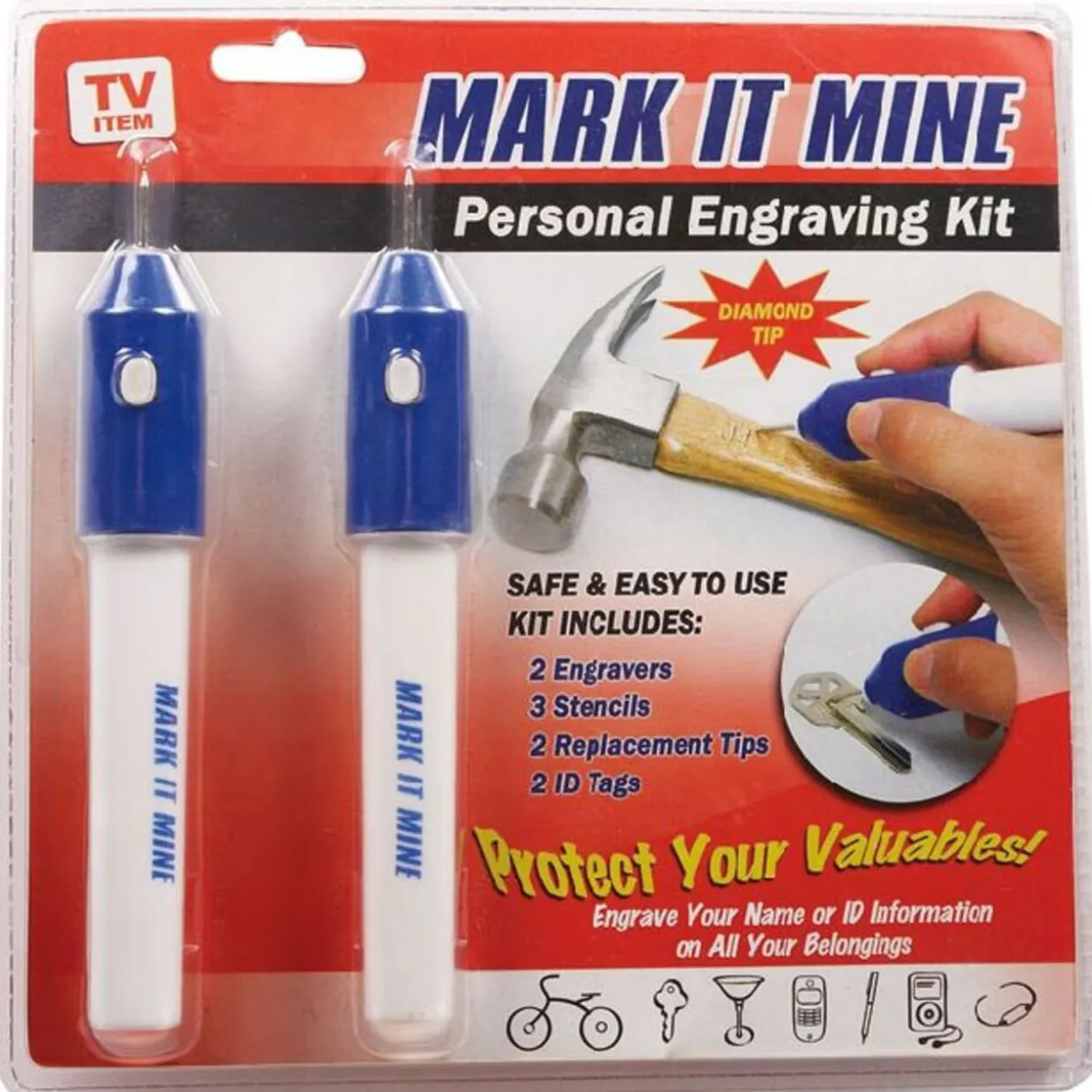 2 stylos graveur pour bois, métal, plastique et verre. Comprend deux têtes de rechange, deux plaques de métal et trois planches de pochoirs pour vous faciliter la gravure. Fonctionnent avec 4 piles AA non fournies…