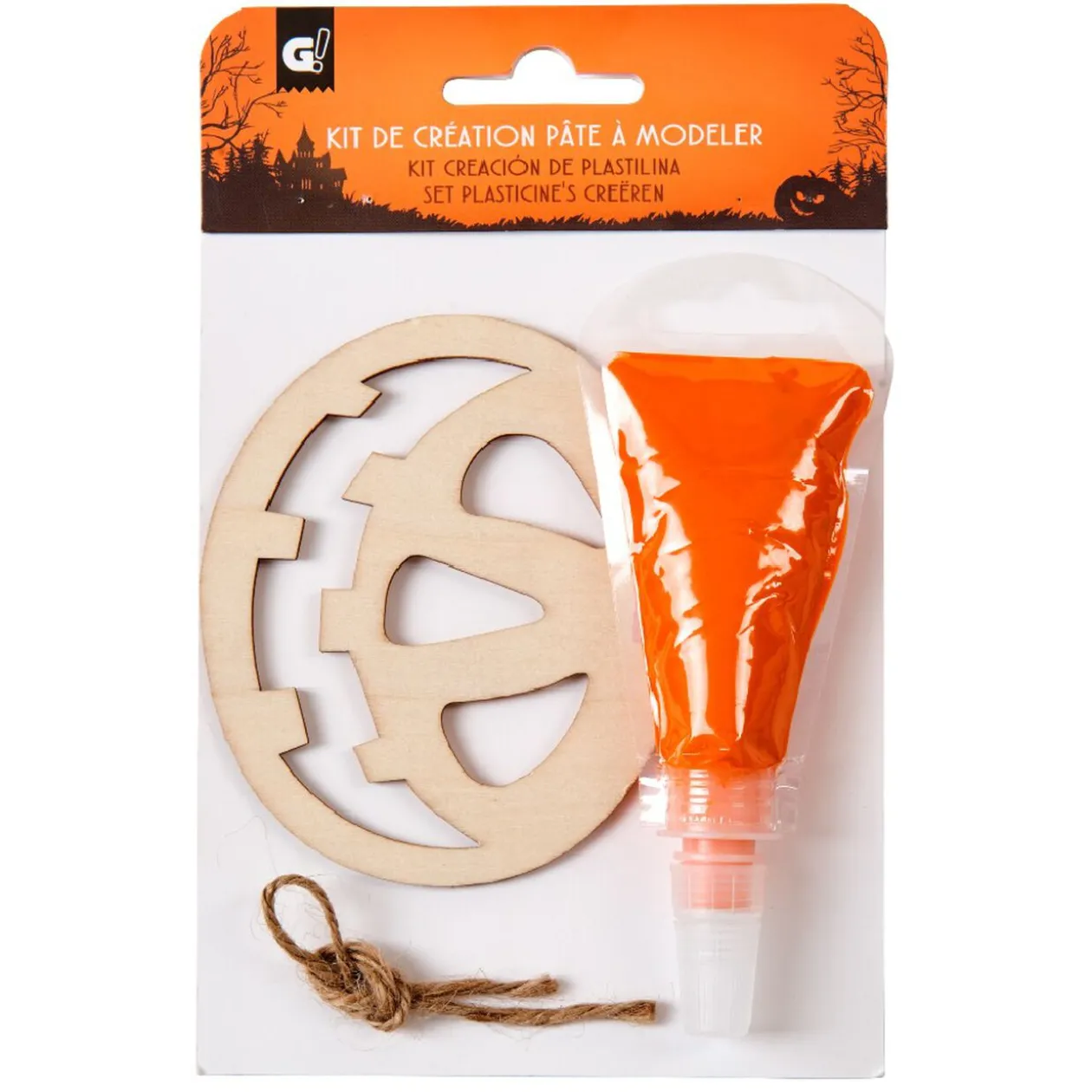 Suspension Halloween en forme de citrouille à décorer avec la pâte de modelage fournie.