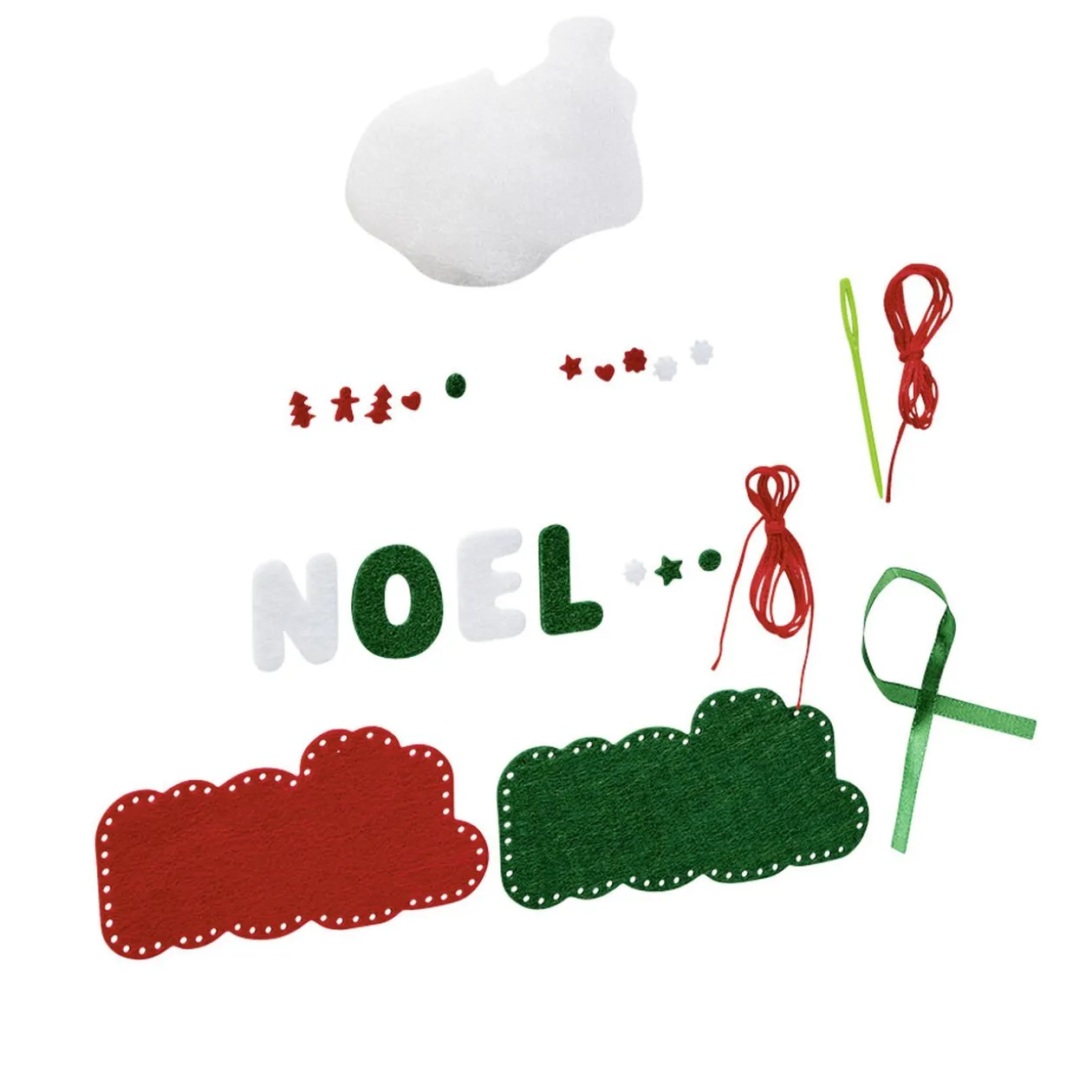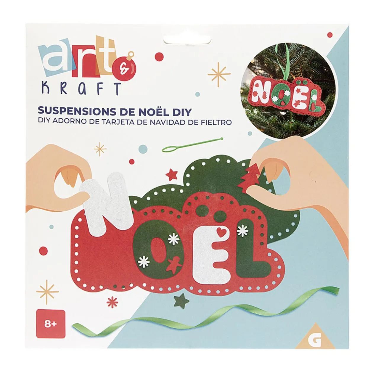 Ce kit permet de confectionner une jolie suspension rouge, verte et blanche composée des lettres de Noël.