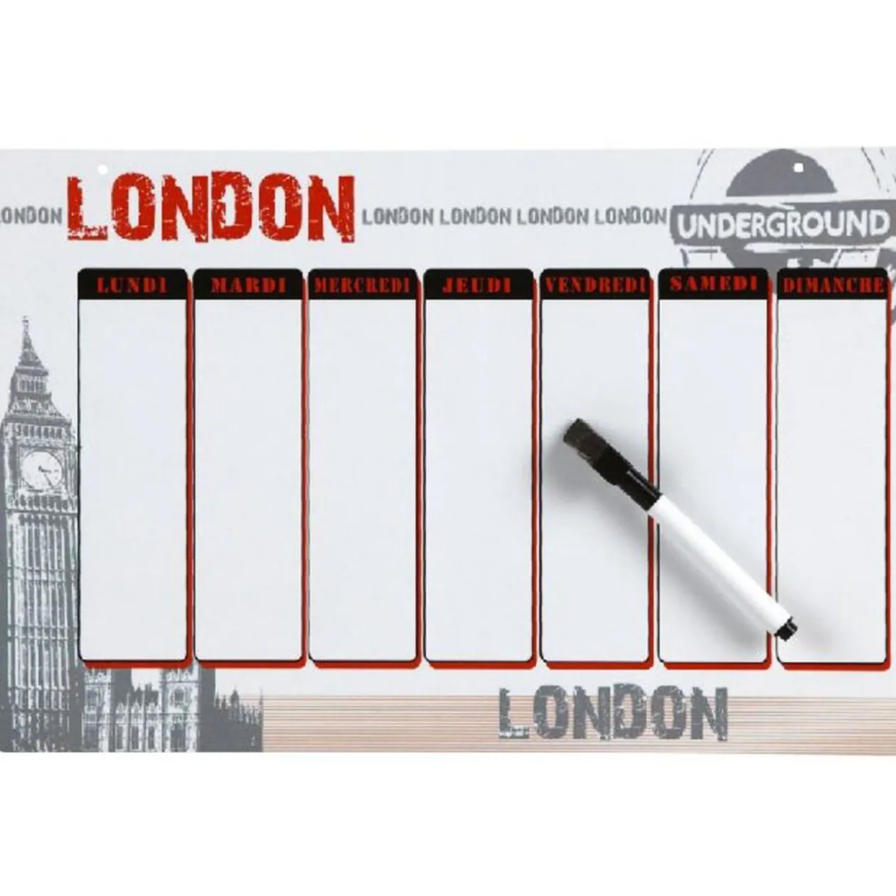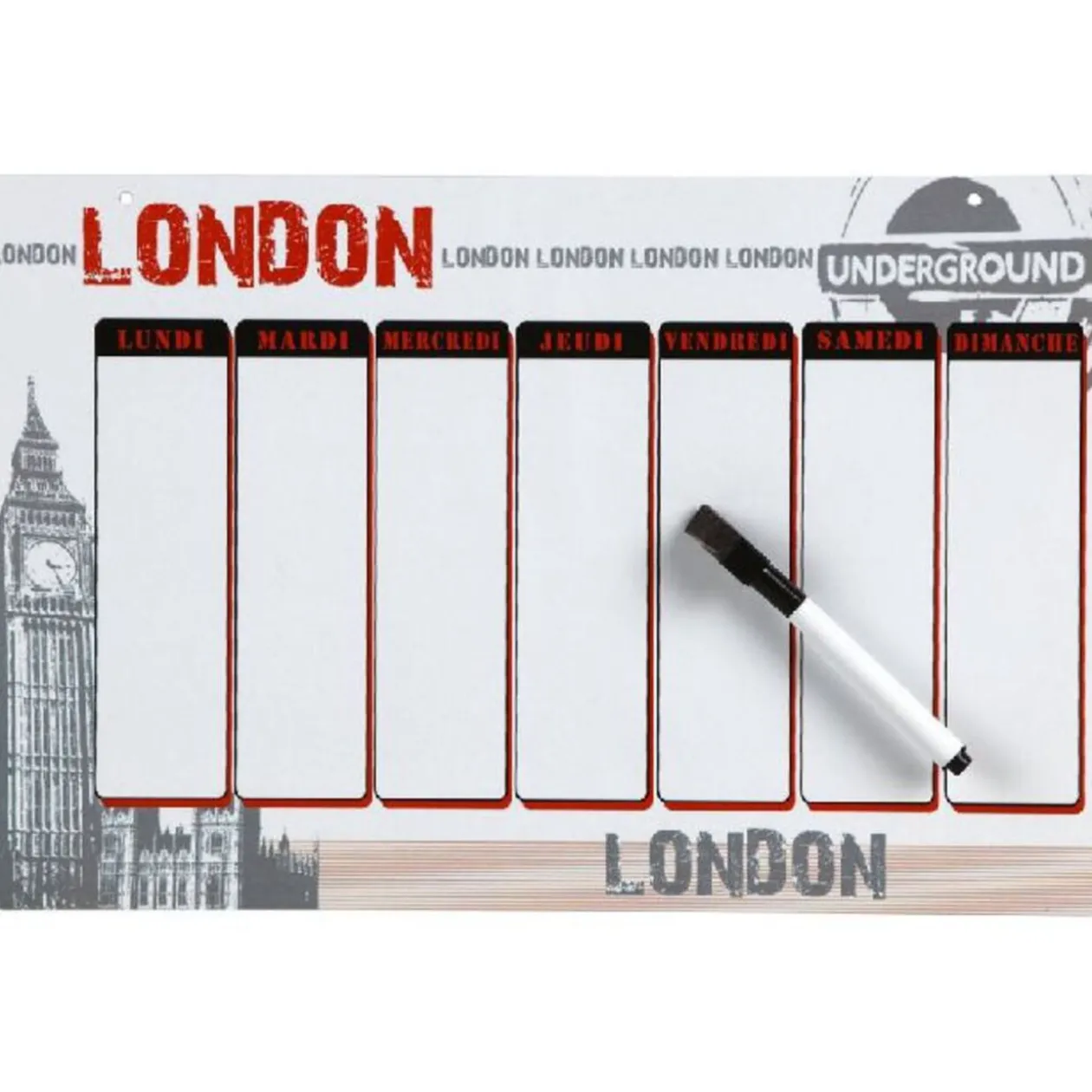 Semainier magnétique de dim. 35×23 cm, comprend : 1 feutre avec tampon effaceur. Diff. modèles, disponibilité selon arrivage.