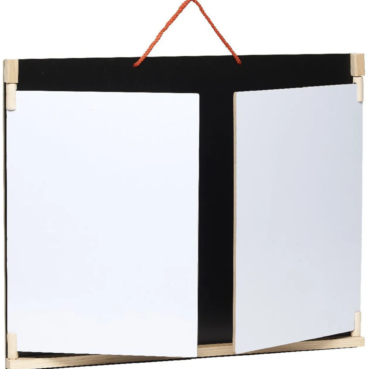 Tableau mural intérieur ardoise,extérieur tableau blanc, en bois. Dim : 60 x 4 x 50 cm.