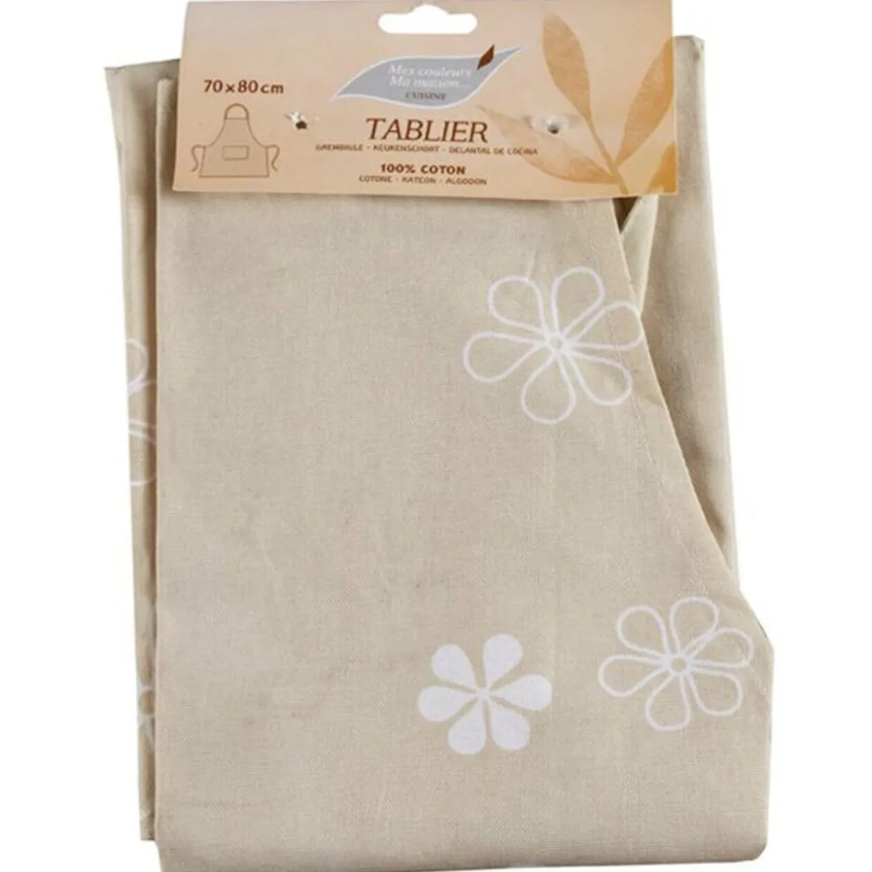 Tablier 100% coton de 70×80 cm de dimensions, avec imprimés fleurs.
