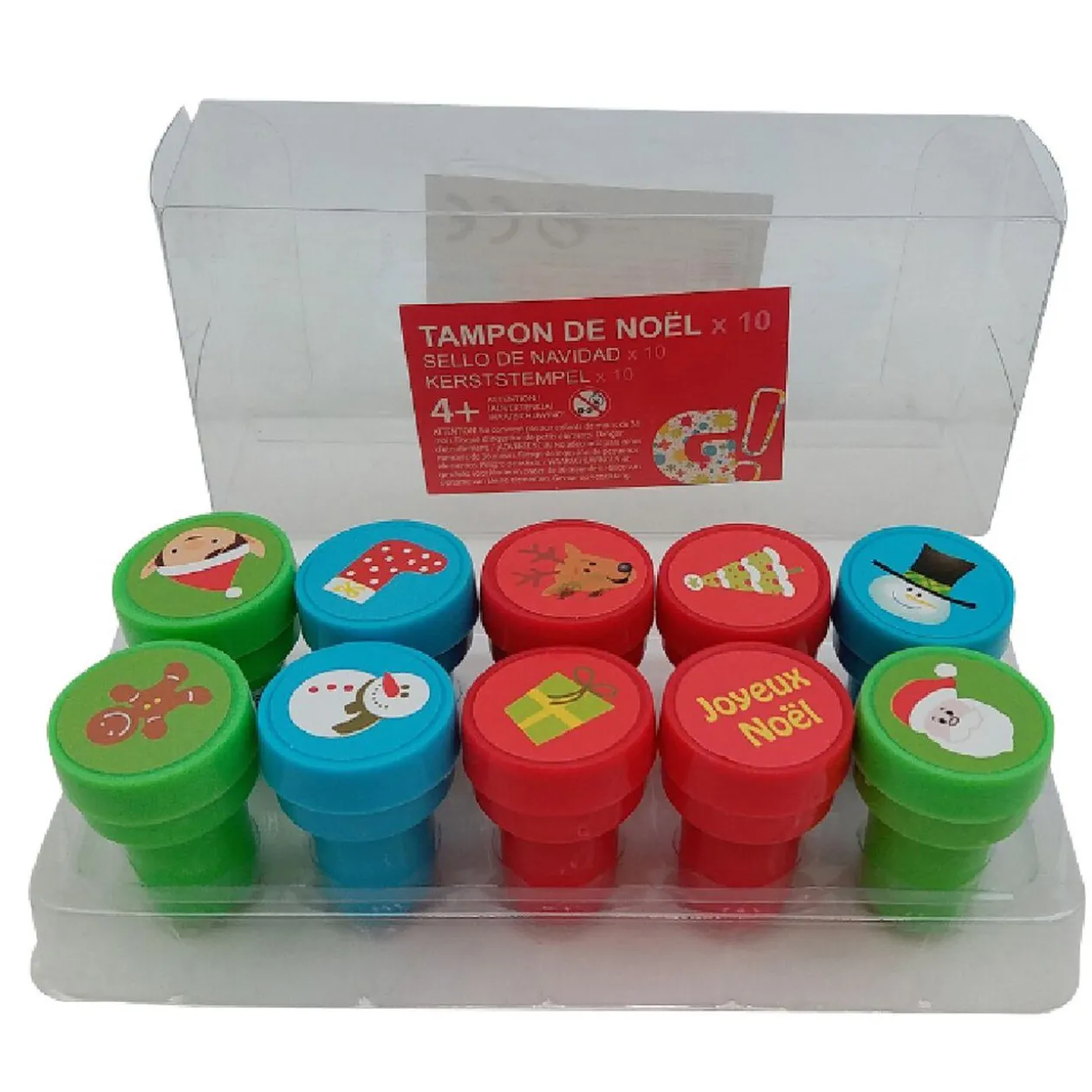 Lot de 10 tampons encreur de Noël, motifs Père Noël, bonhomme de neige, sapin, chaussette, cadeau….