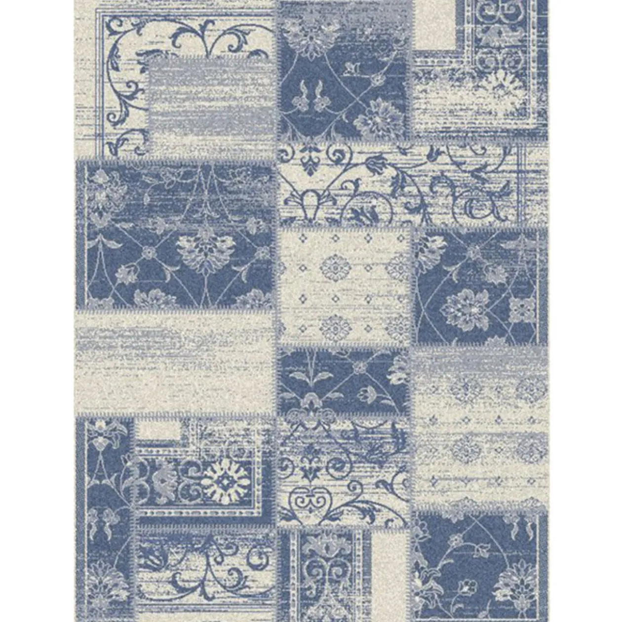 Tapis effet tissé bleu et blanc design fleur, dim. 120×170 cm, polypropylène.