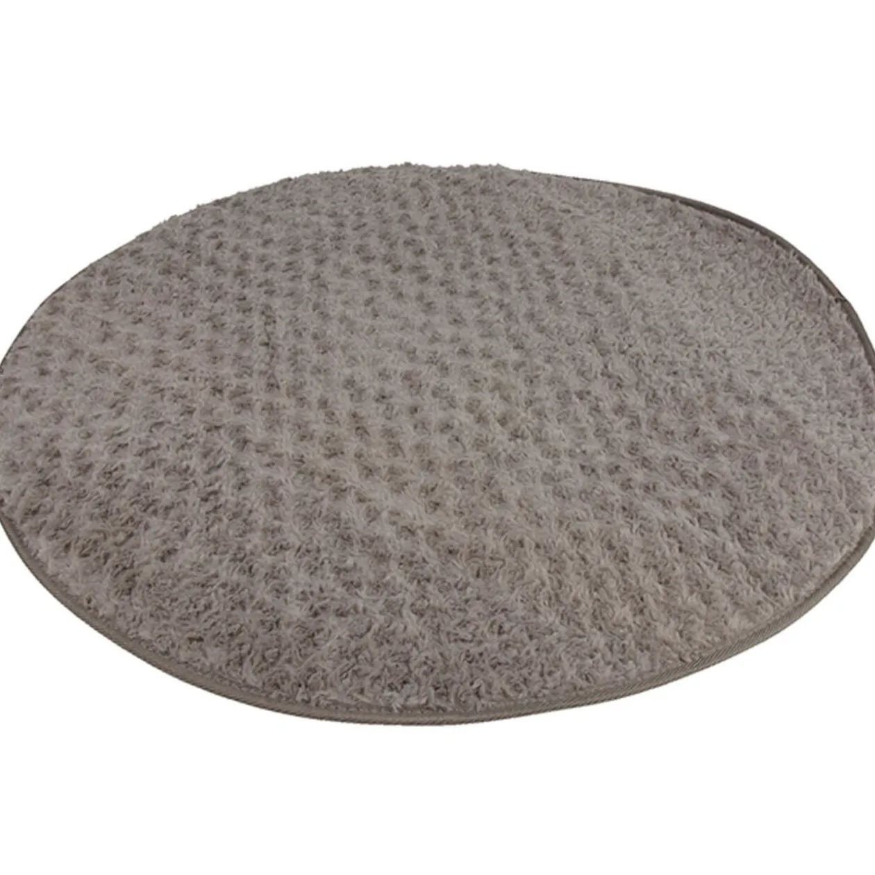 Tapis rond taupe imitation fourrure, ø 90 cm, polyester.