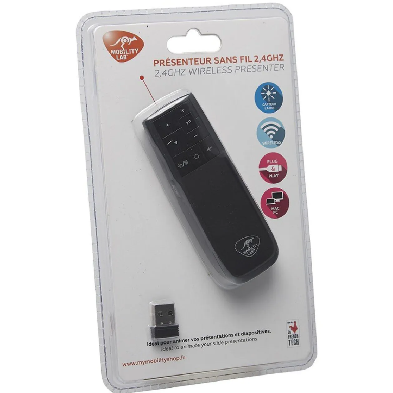 Pointeur laser avec technologie sans fil 2.4 Ghz avec récepteur Nano.
