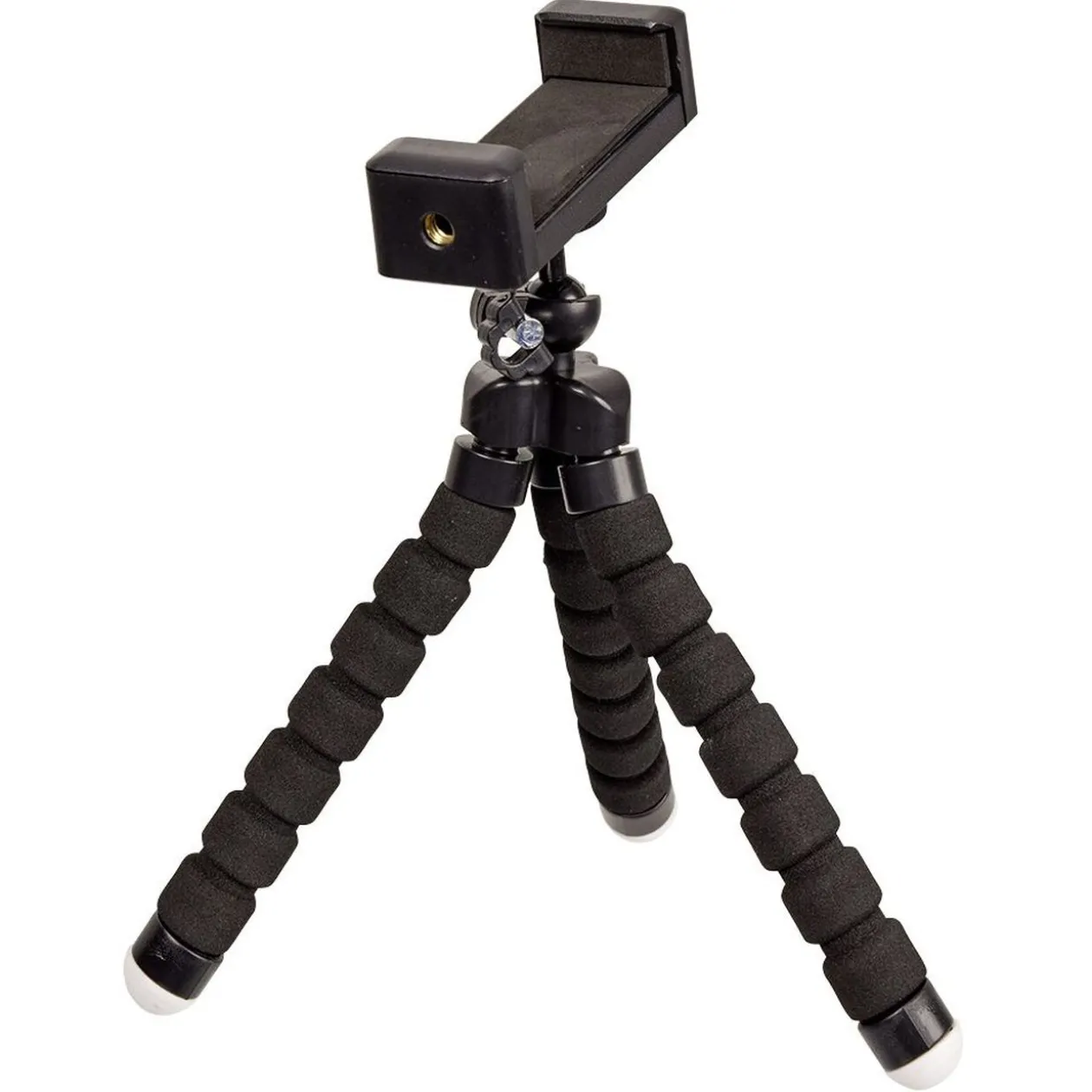 Trépied noir pour smarpthone et autres supports allant jusqu’à 8,5 cm de largeur.
