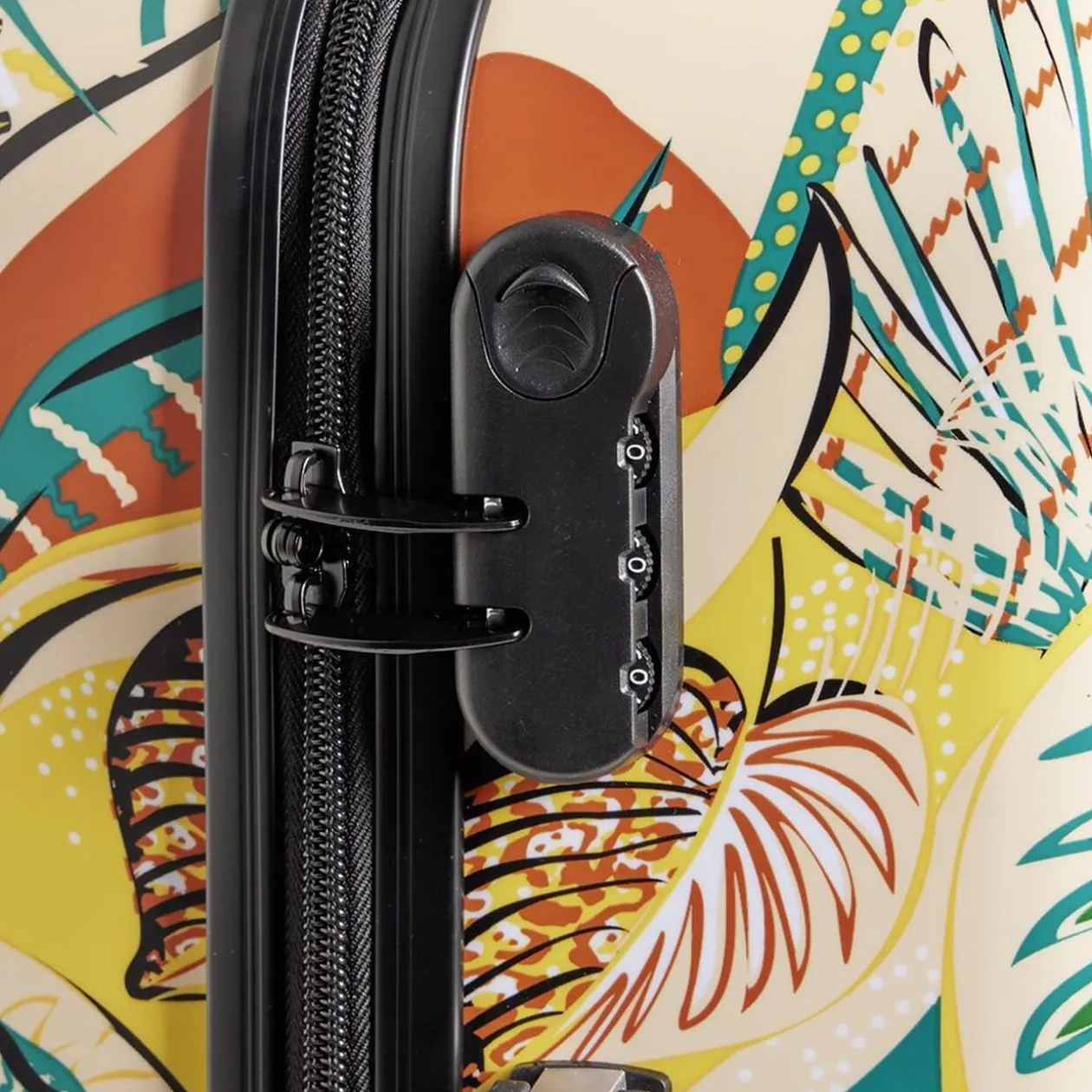 Multicolore avec des motifs de feuillage, cette valise se démarque facilement des autres, plus facile à repérer et également plus sympa à balader avec son joli esthétisme.
