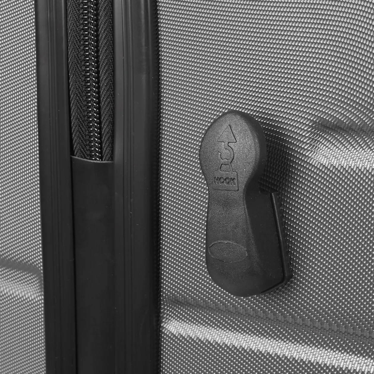 Valise rigide en ABS résistant de couleur grise. À la fois légère, pratique et résistante aux chocs, elle est idéale pour tous vos déplacements en voiture, en avion ou en train !