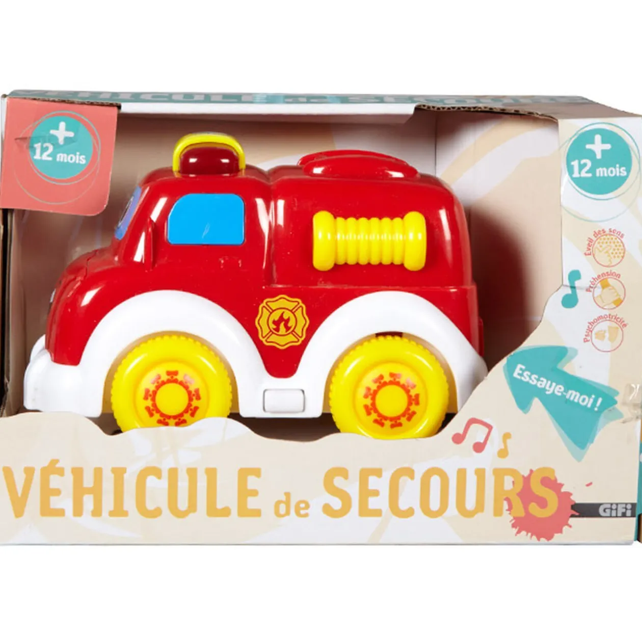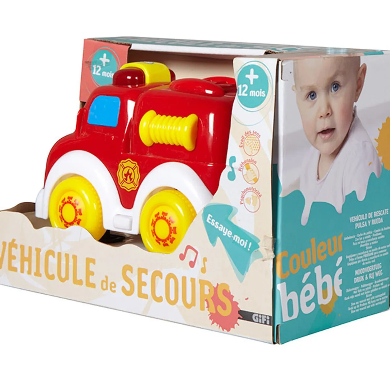 Véhicule de secours à friction son et lumière. 3 modèles proposés : pompier, police, ambulance. Dès 12 mois.